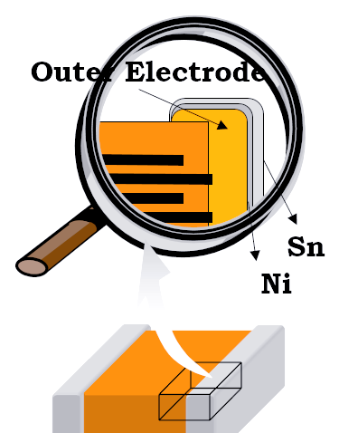 包含外部电极、阻挡层和焊接层。外部电极,通常由铜或银金属制成,与内部电极相连,负责与外部电源的连接。阻挡层,主要由Ni镀层构成,其功能是热阻挡,防止高温对内部结构的影响。而焊接层,通常为Sn镀层,确保了良好的可焊接性。