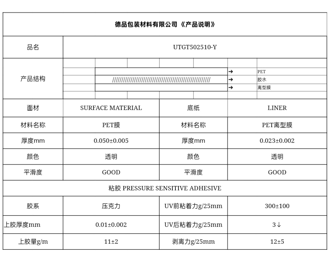 50#PET膜UV胶带-低粘易剥离产品说明: